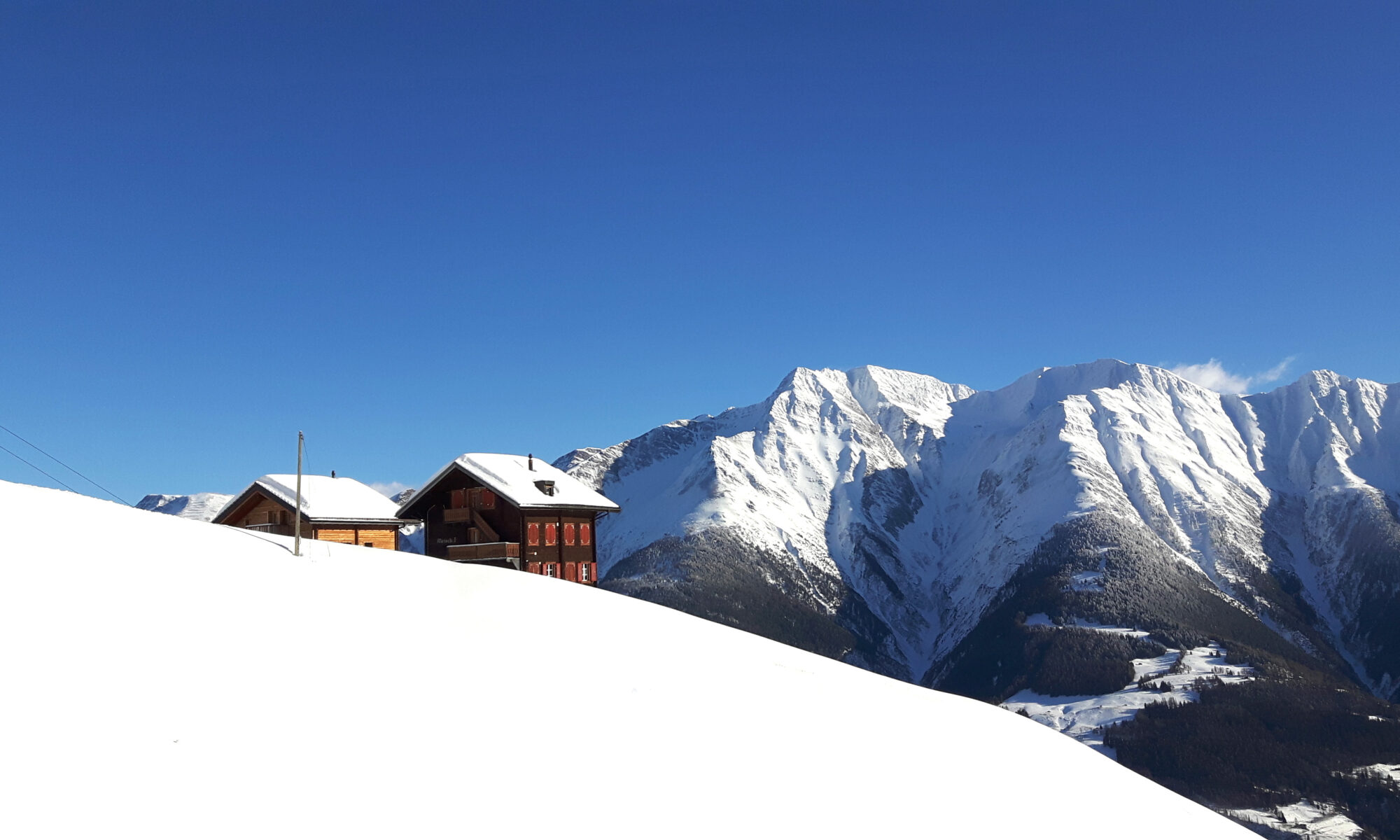 Auch für die Winterferien das ideale Quartier. Bei dichtem Schneegestöber scheinbar ab der Welt, liegt es doch nur 100 m ebenaus vom nächsten Sessellift mit Anschluss ans weitläufige Skigebiet «Aletsch Arena».
